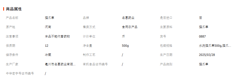 | 主营产品或服务 | 主营: 其他药食同源 其他滋补 参类滋补品 | ||