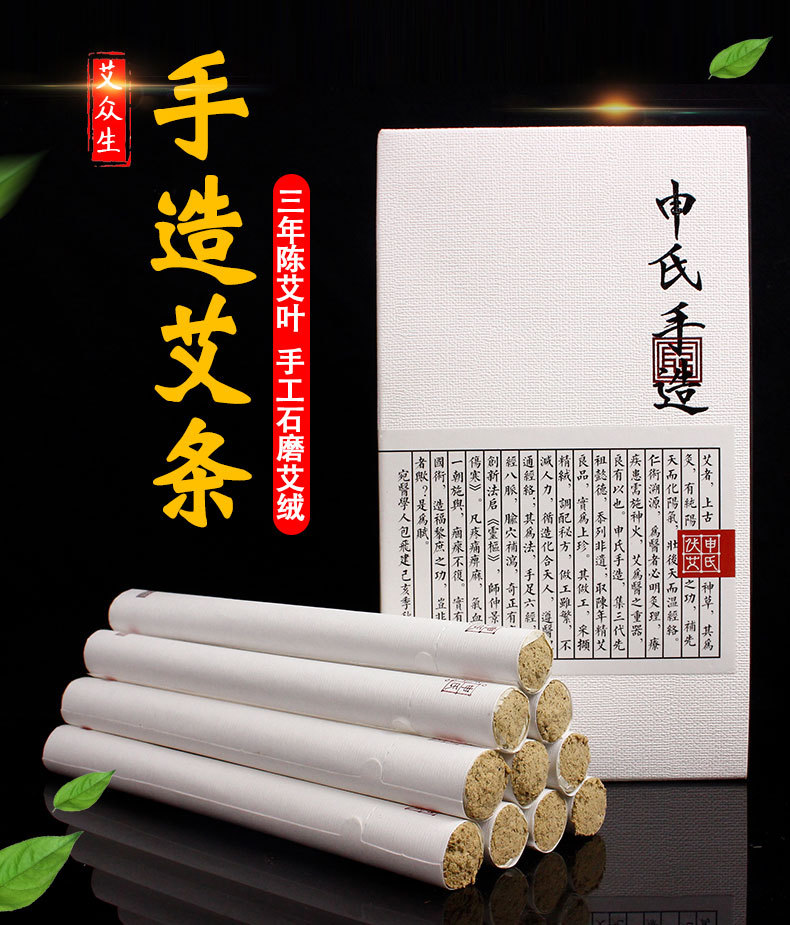 申氏手造艾条 人工卷制石磨绒艾柱厂家直供批发 古法制作
