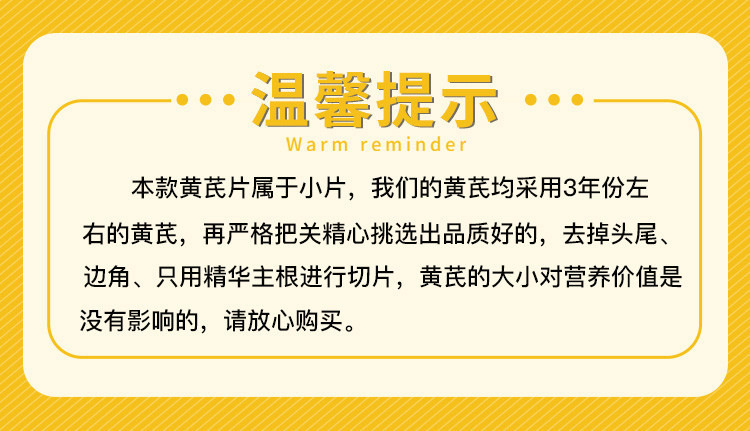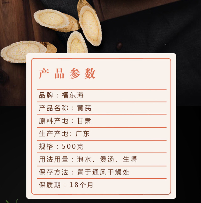 福东海黄芪片 精选甘肃黄芪指甲片中药材罐装500g 当归党参茶泡水