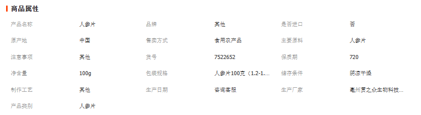人参片100g东北山参切片长白山人参泡茶生晒参片 散装精品