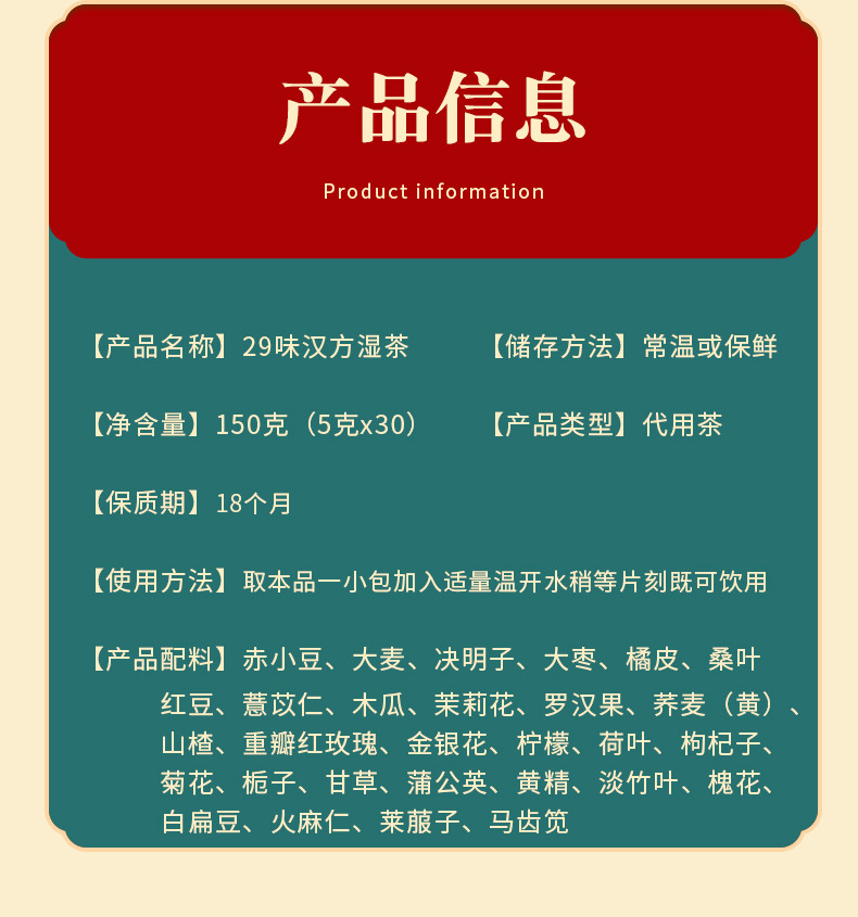 南京同仁堂29味汉方湿茶 红豆赤小豆薏米茶茯苓蒲公英茶厂家代发