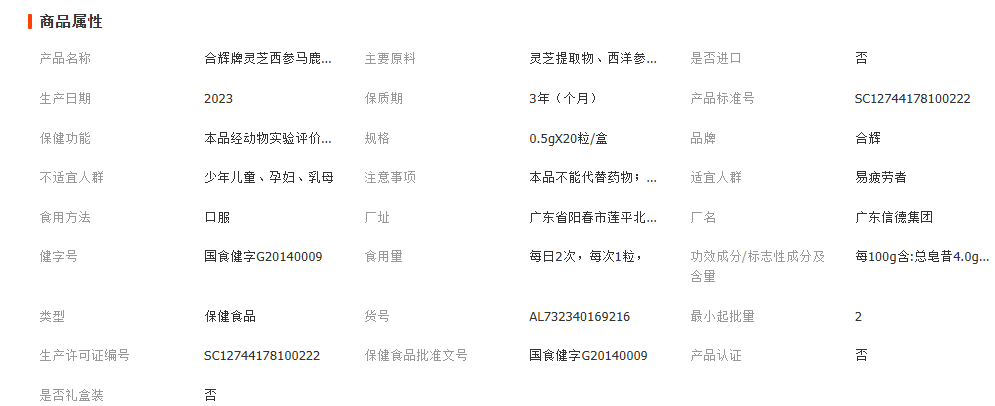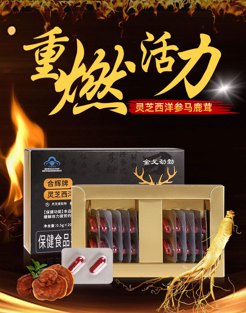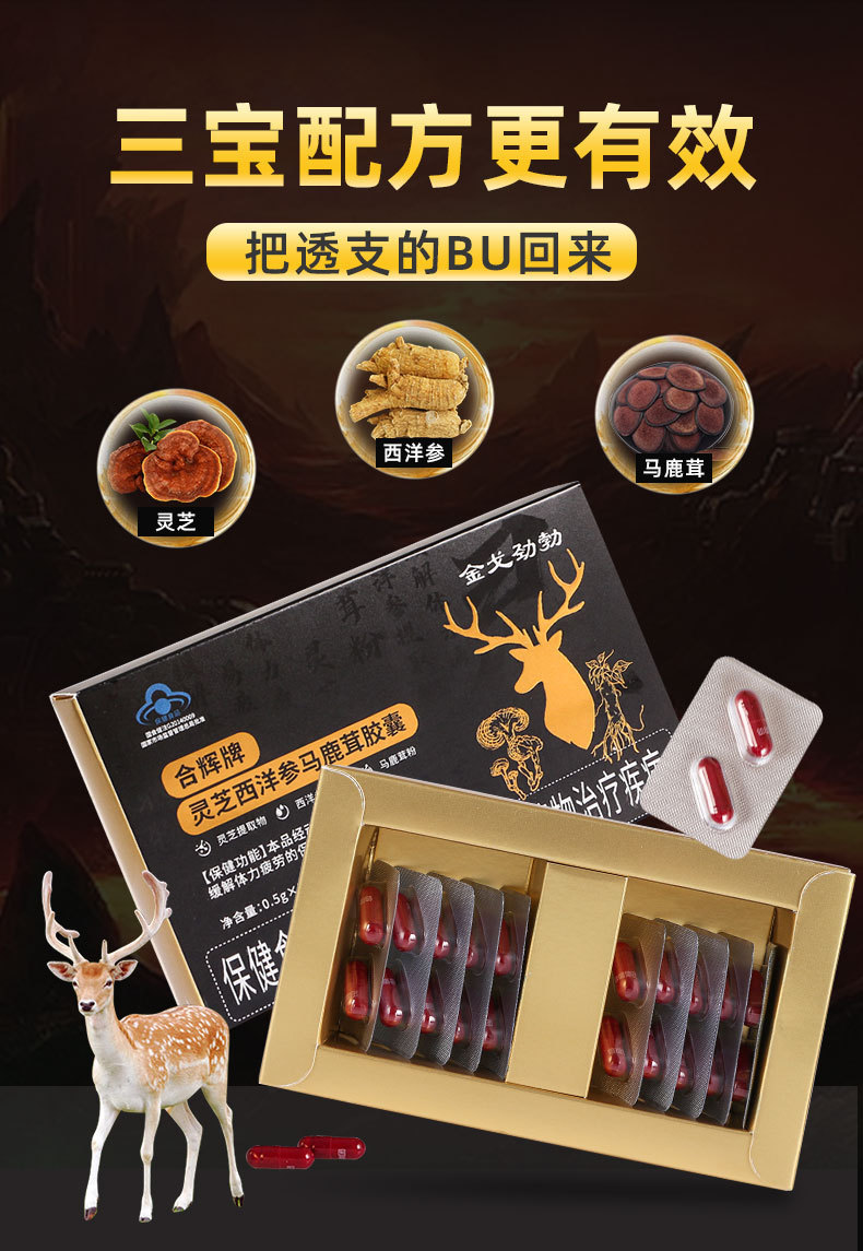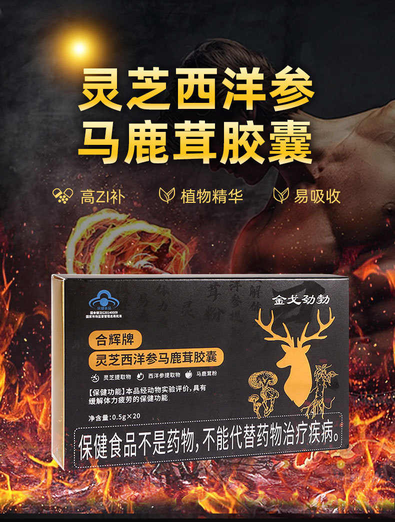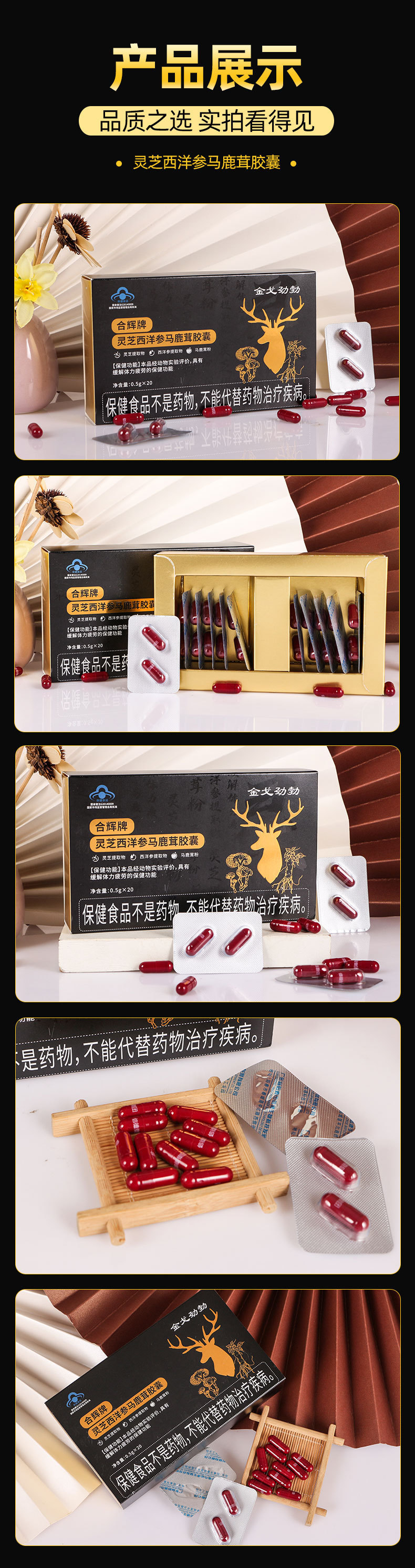 蓝帽认证合辉牌灵芝西参马鹿茸胶囊缓解疲劳男性专用保健食品源厂