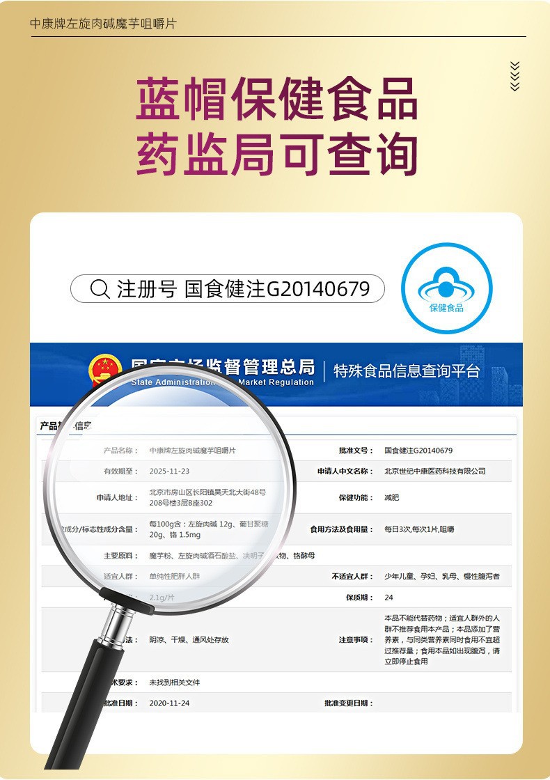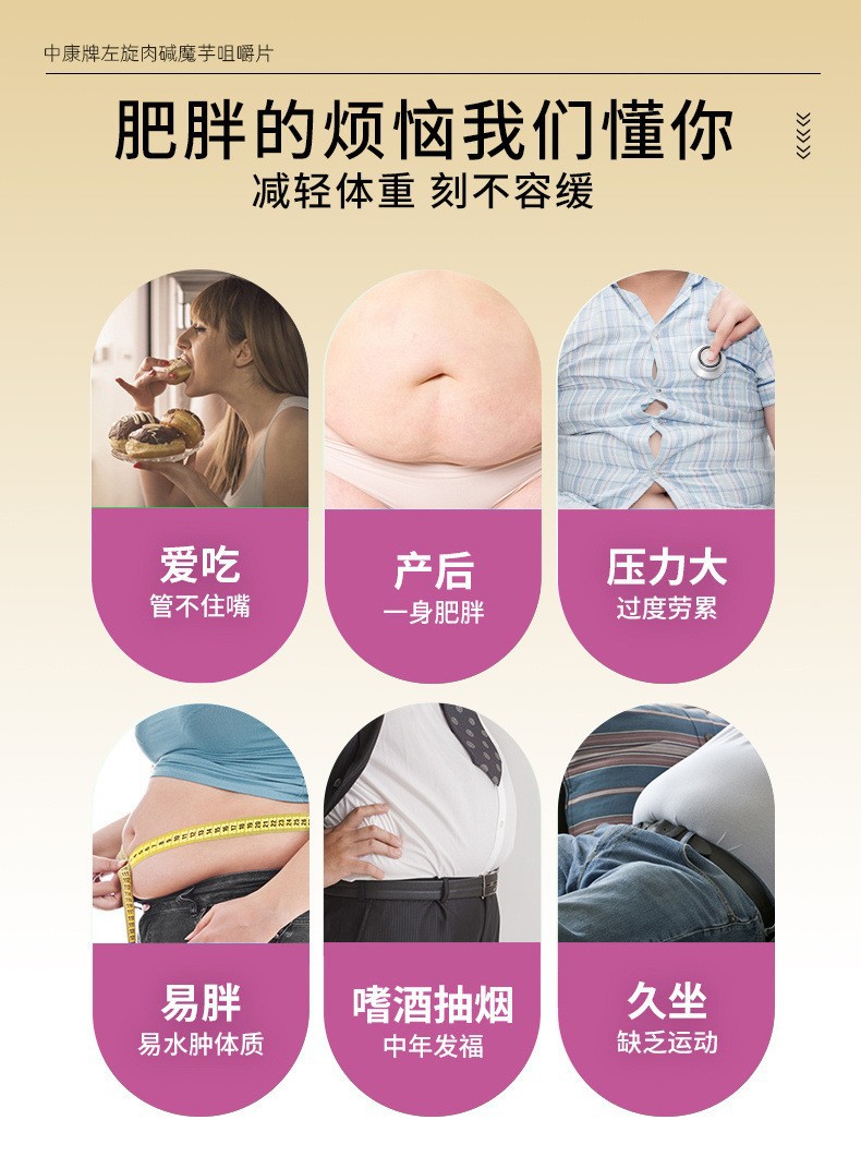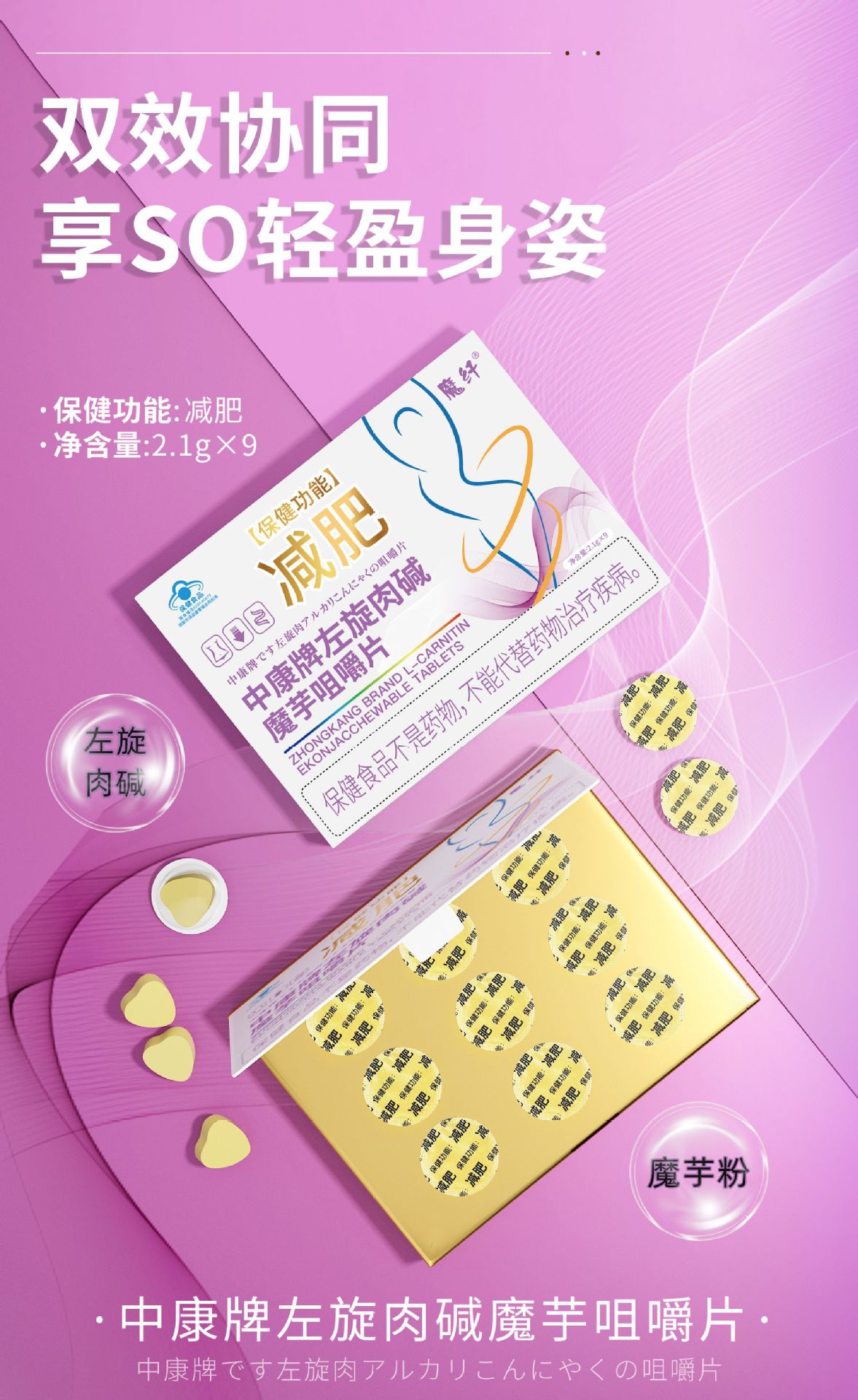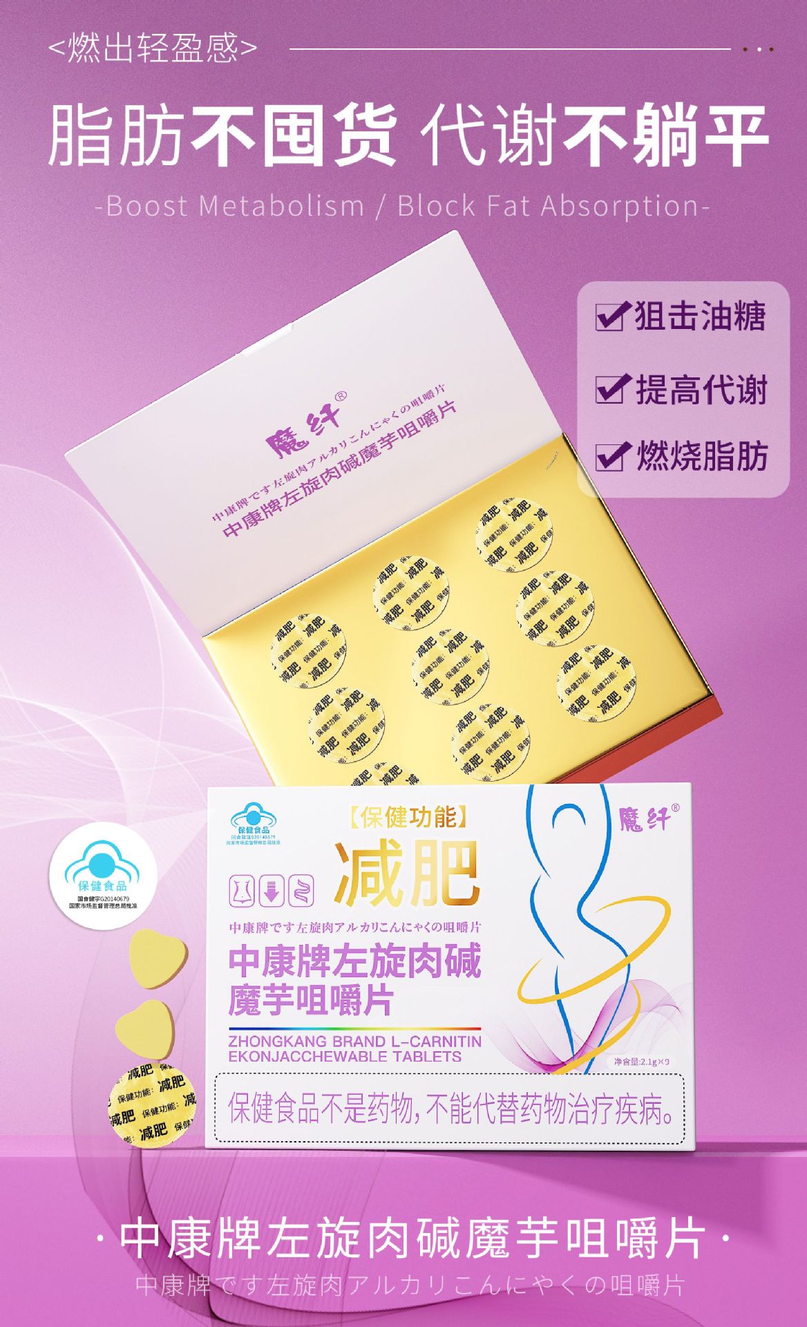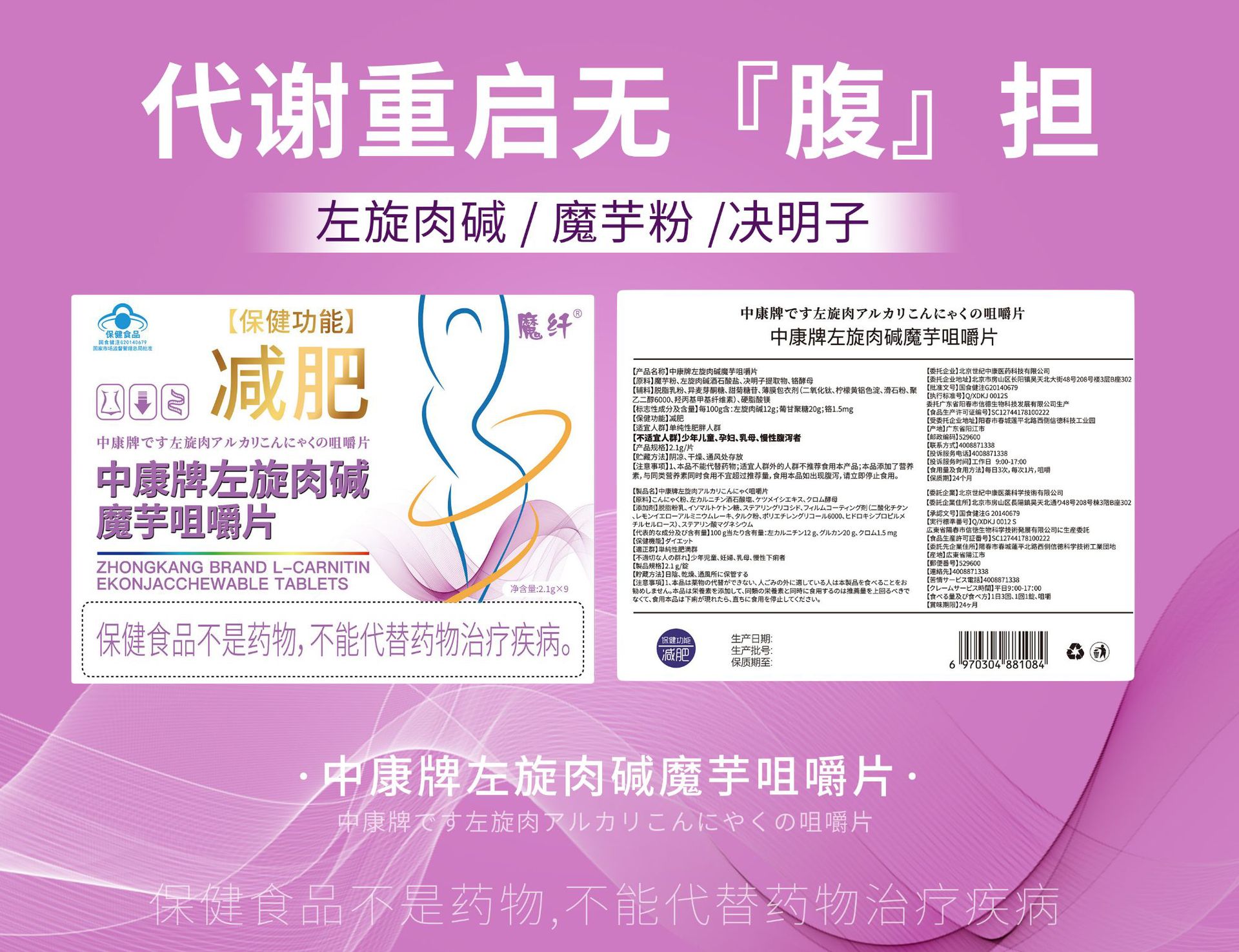 中康牌左旋肉碱魔芋咀嚼片减肥片蓝帽保健食品减肥燃脂片批发定制