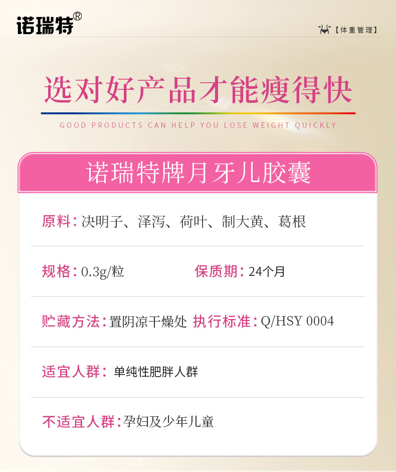 诺瑞特月牙儿胶囊60粒批发控制食欲减肥片蓝帽保健食品代加工