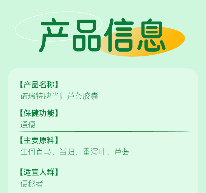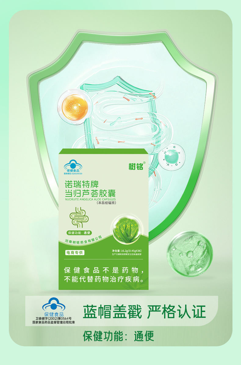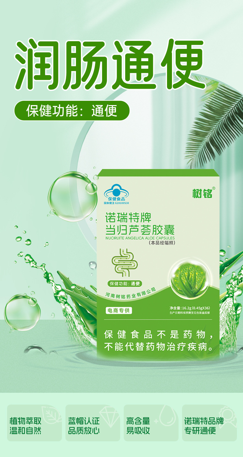 诺瑞特当归芦荟胶囊36粒批发成人润肠通便蓝帽保健食品代加工