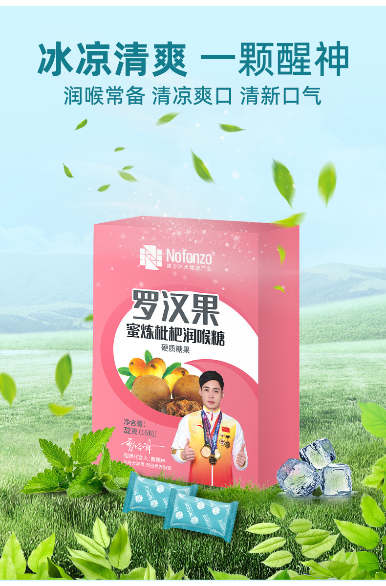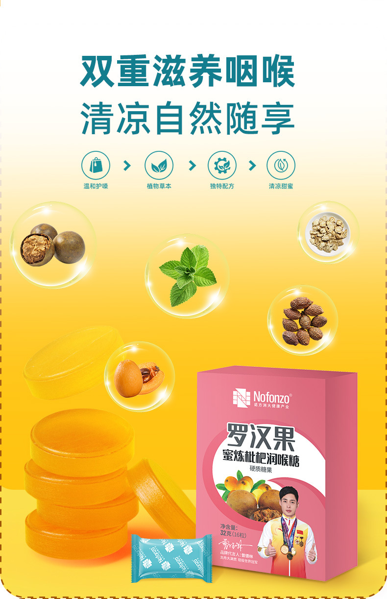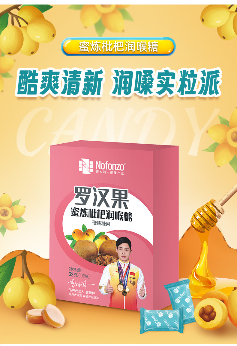 诺方洲罗汉果蜜炼枇杷润喉糖强劲清凉润喉清新口气休闲零食纸盒装