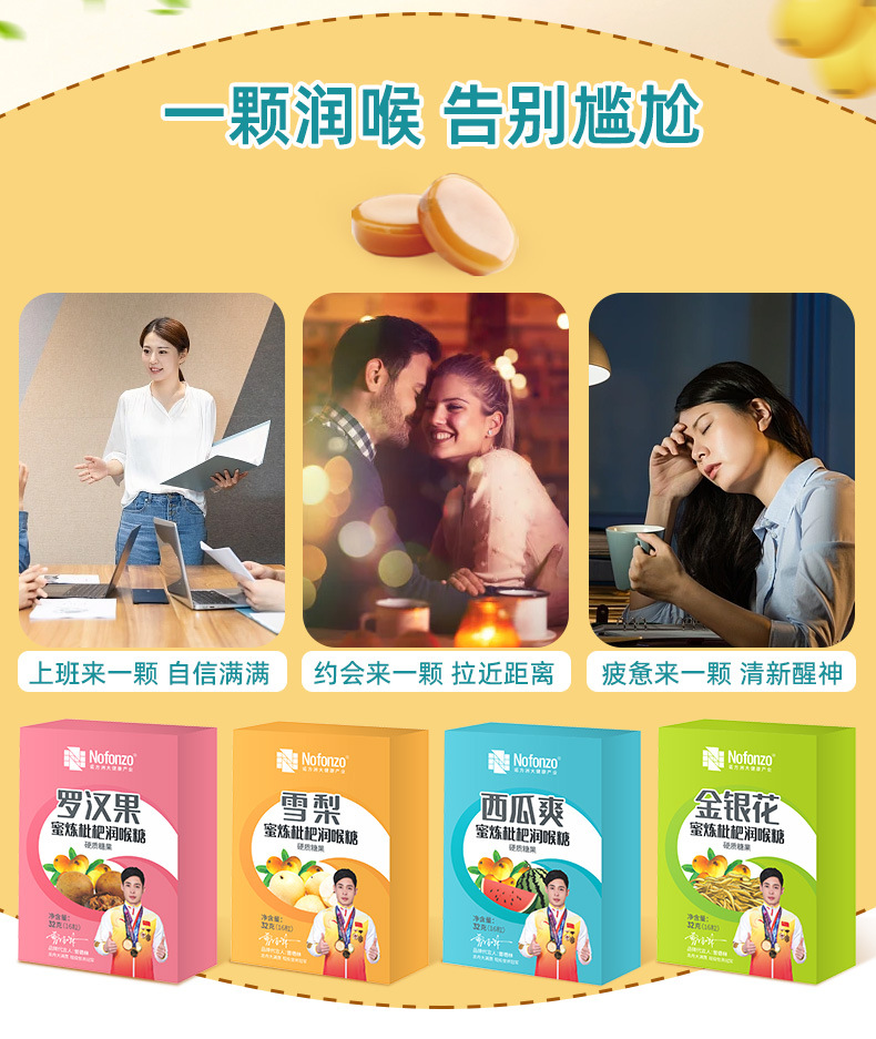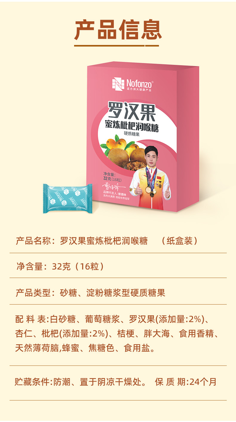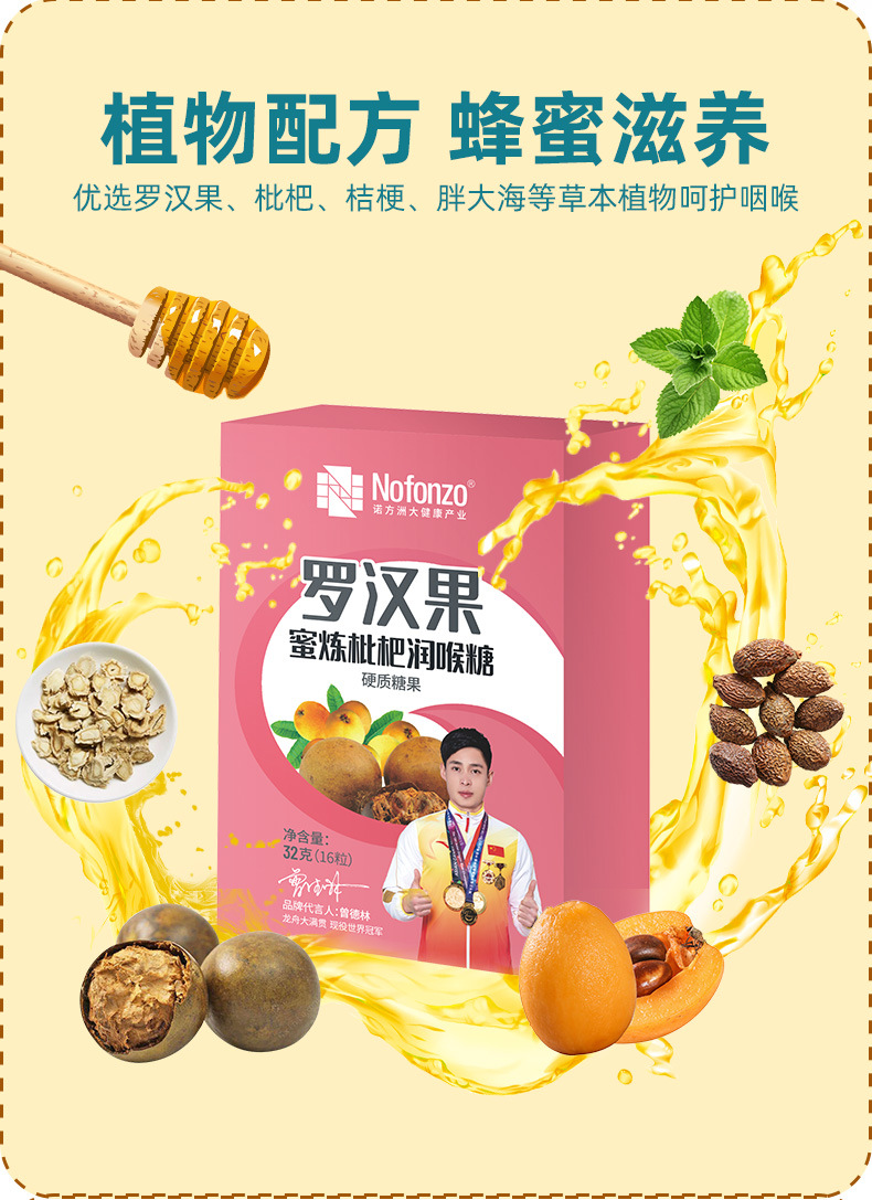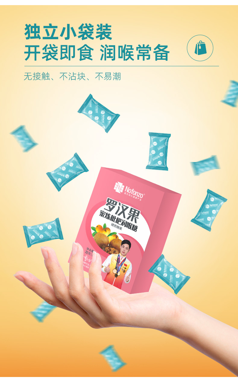 诺方洲罗汉果蜜炼枇杷润喉糖强劲清凉润喉清新口气休闲零食纸盒装