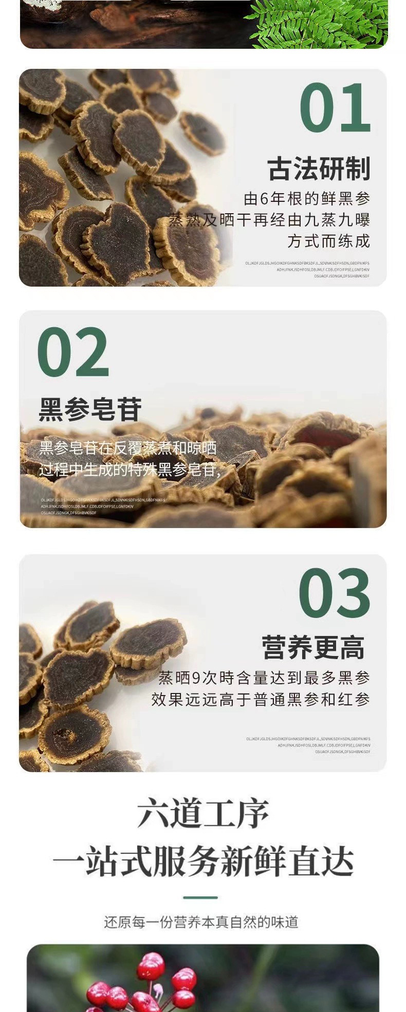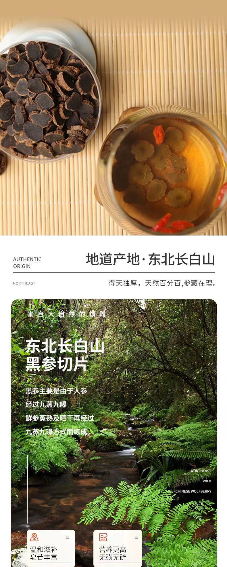 黑参片东北特产 干人参切片九蒸九晒长白山人参纹路清晰现货直发