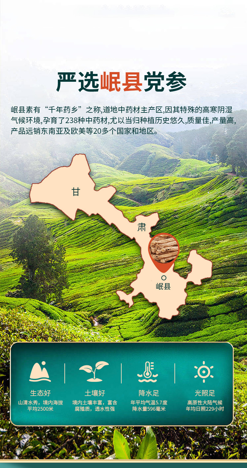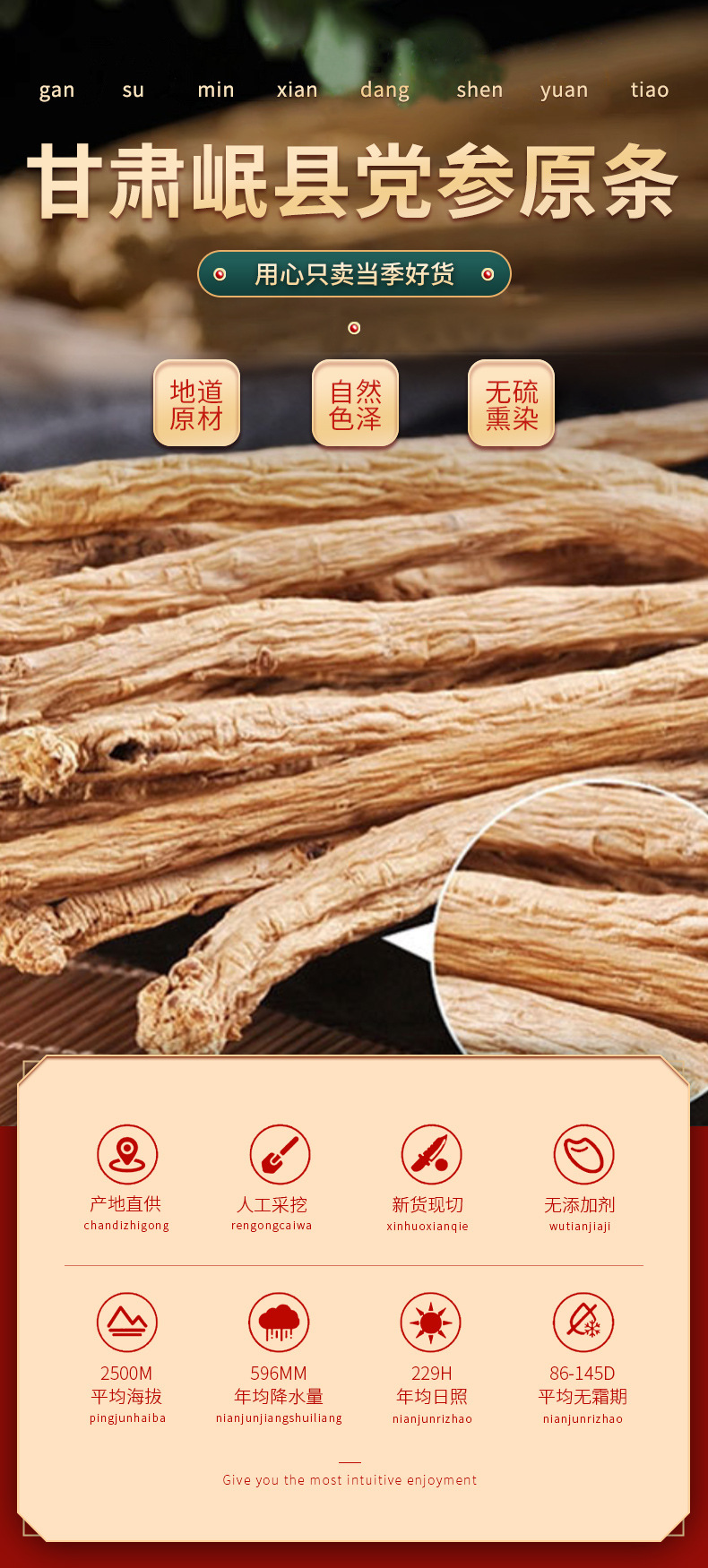 党参中药材甘肃岷县党参干货整支自然晾晒无熏硫党参干货250g包邮
