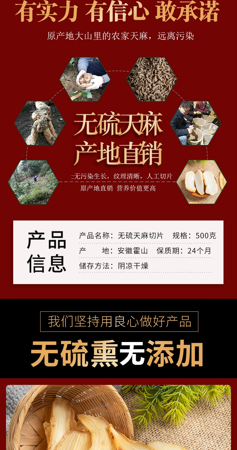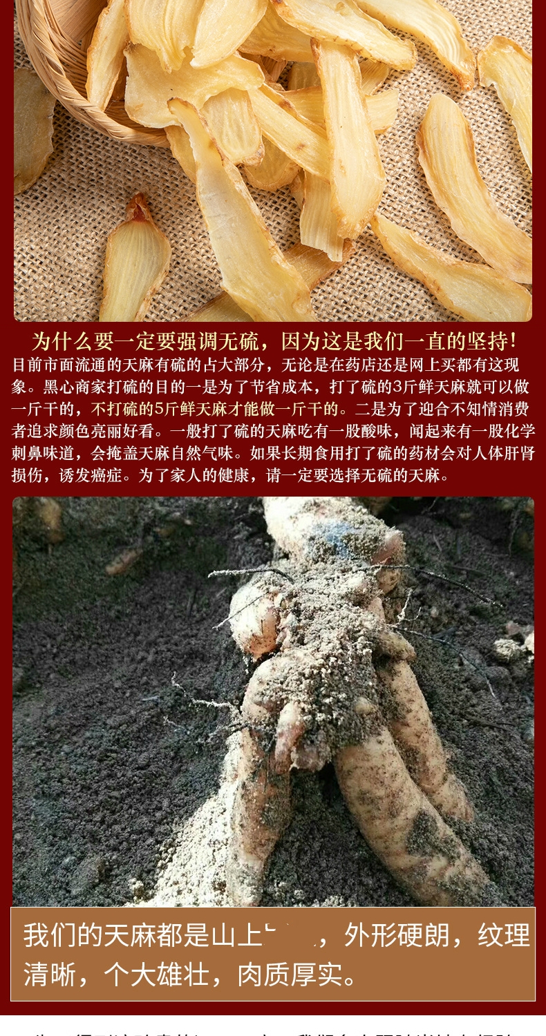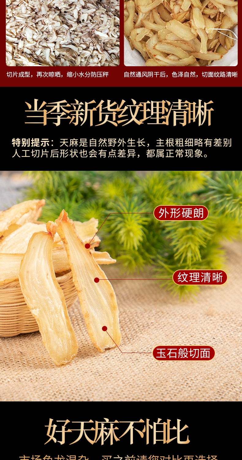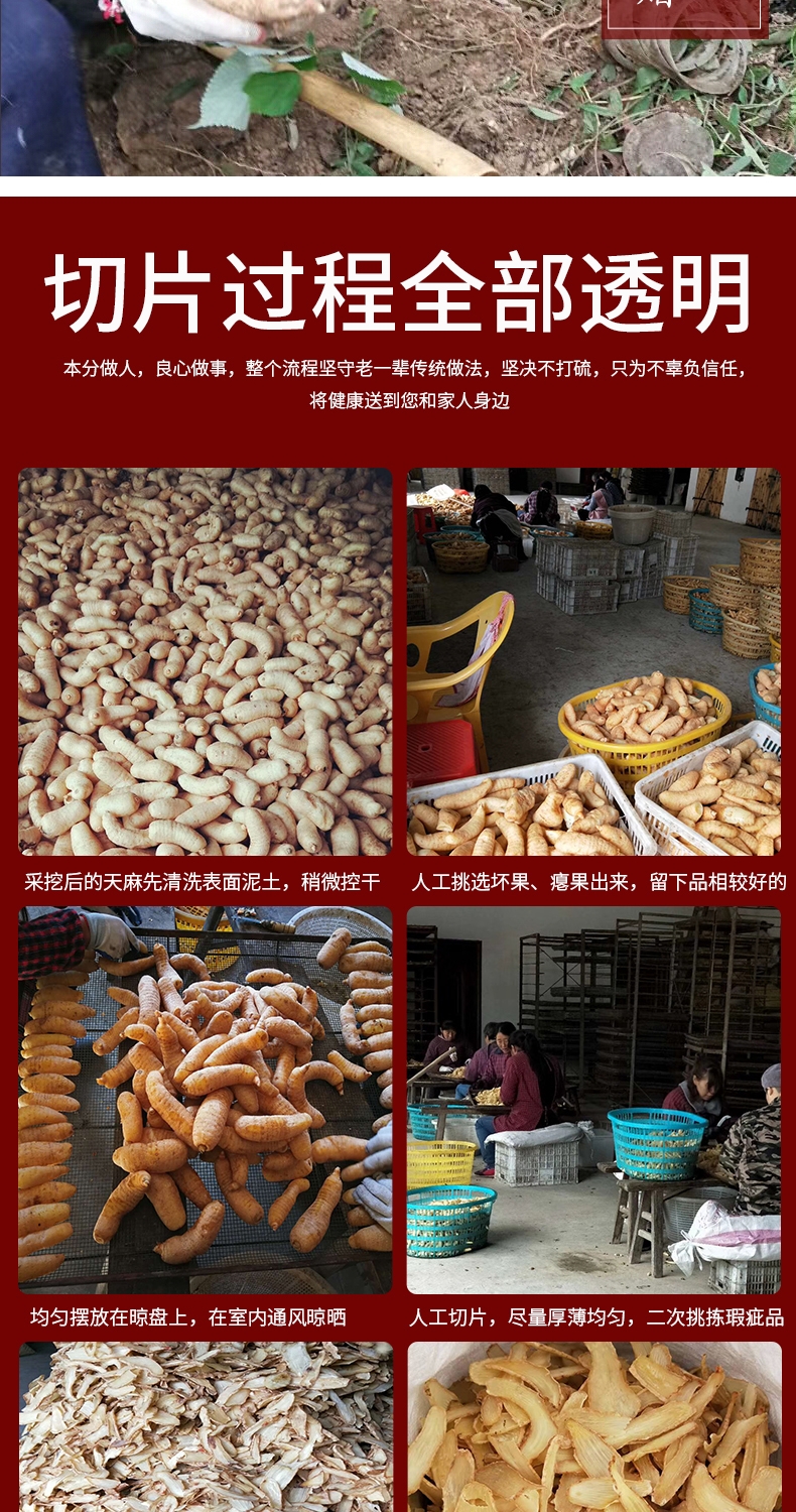 正宗新鲜大天麻切片厂家批发仿野生种植天麻干货中药材干片500g