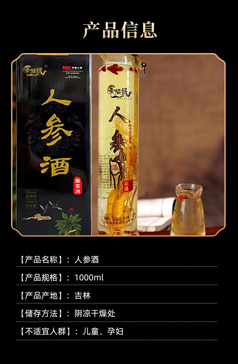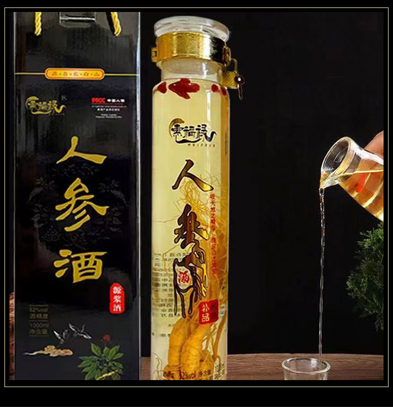 顺丰包邮长白山人参酒52度纯粮酒1000ml礼品酒白酒鲜参批发礼盒装