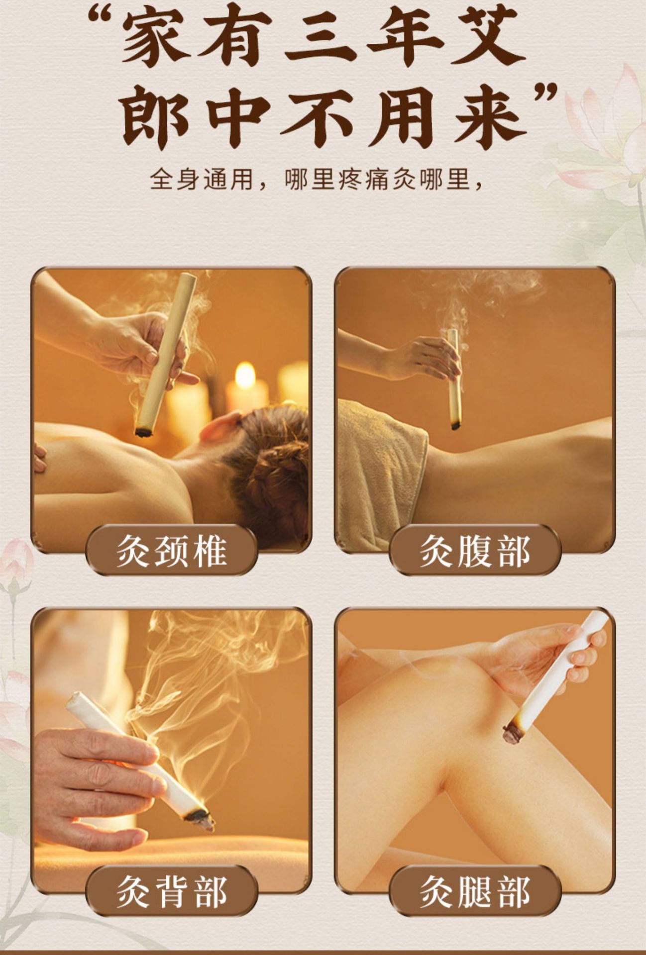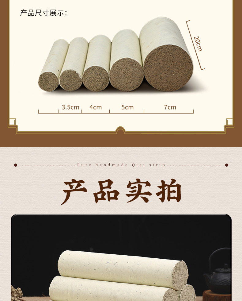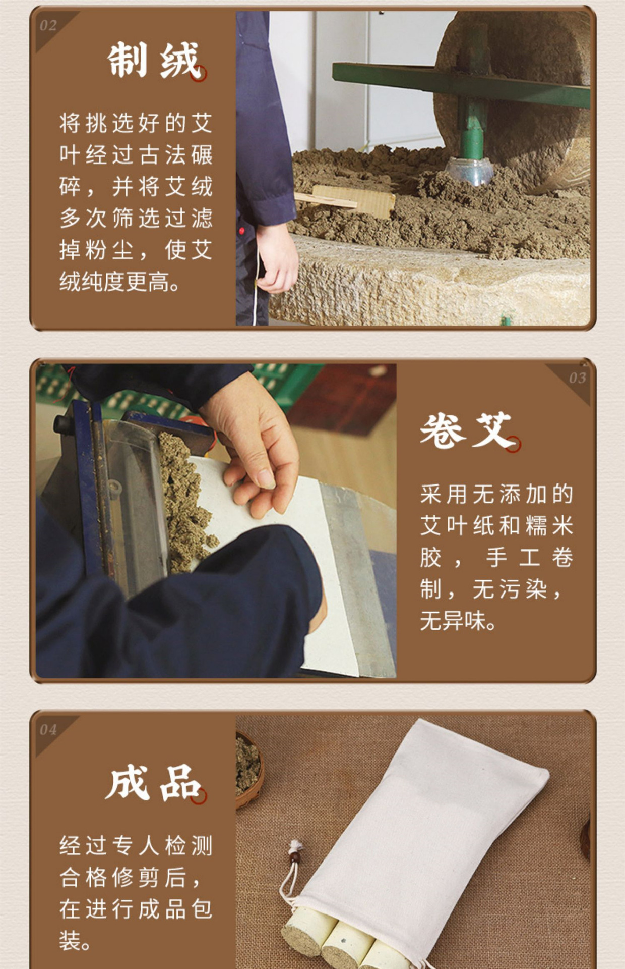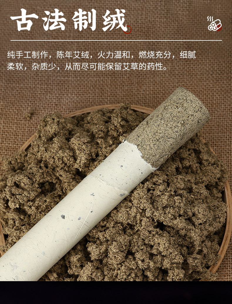石磨艾绒纯手工艾条雷火灸特大加粗三年陈艾叶家用艾灸条艾柱10cm