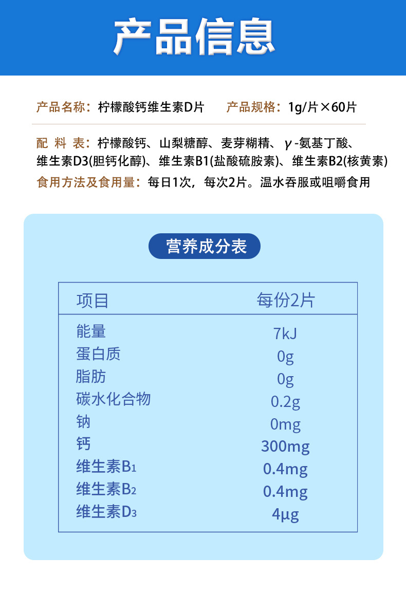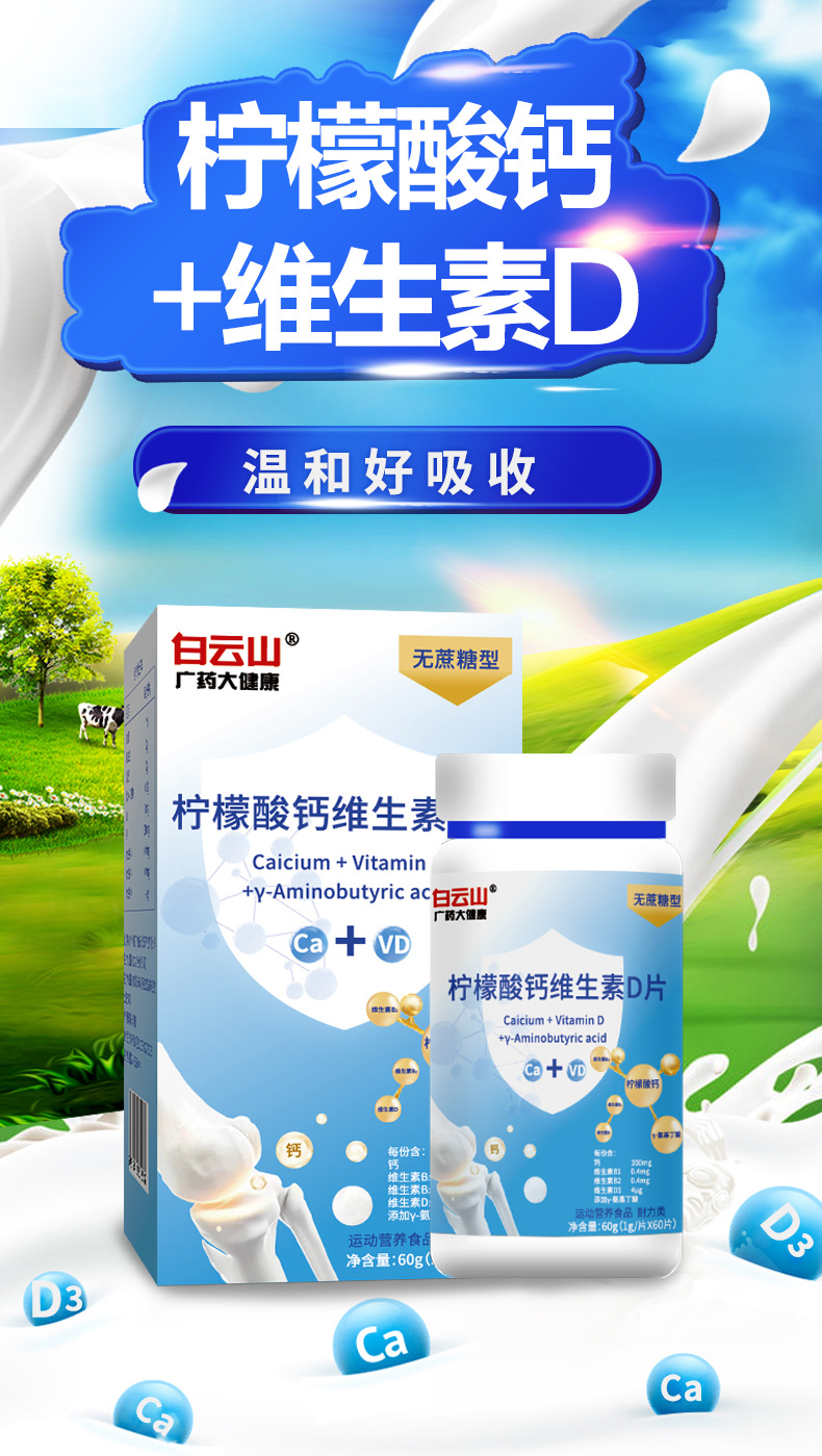 白云山柠檬酸钙维生素D片广药大健康氨基丁酸直播电商代发