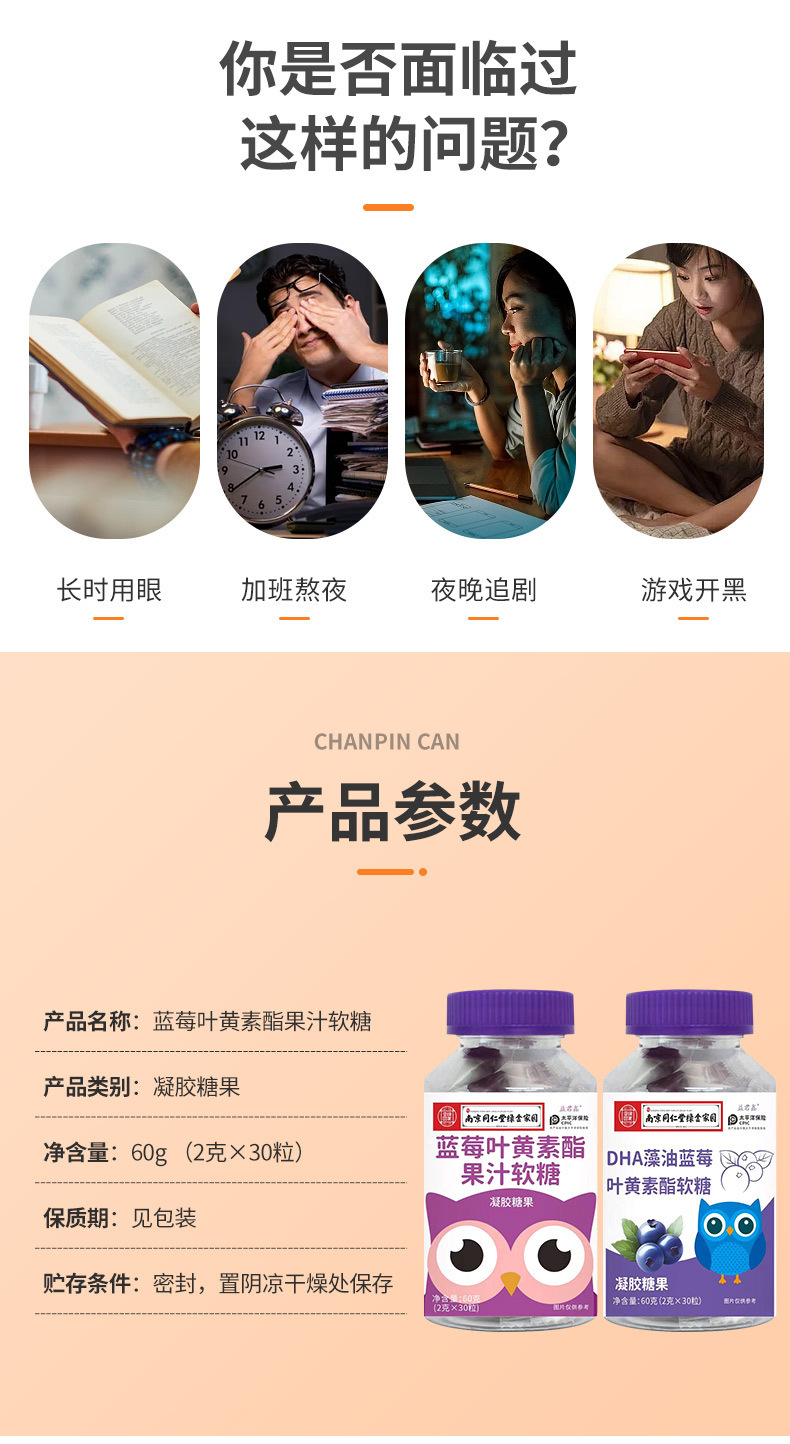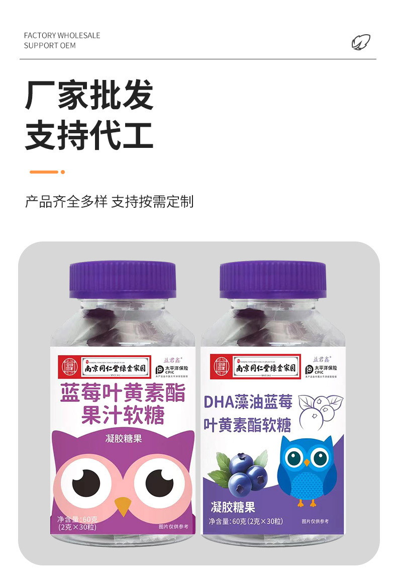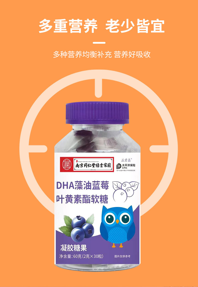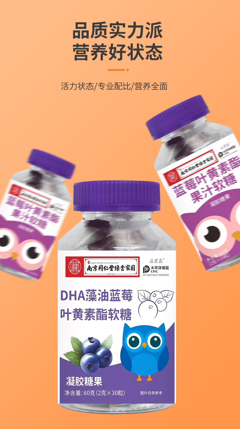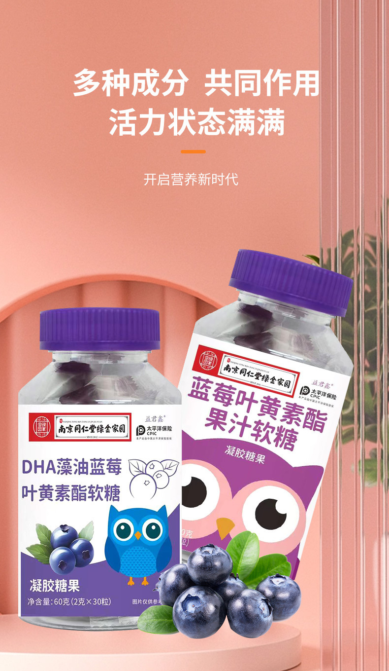 蓝莓叶黄素酯果汁软糖60克DHA藻油蓝莓叶黄素酯软糖