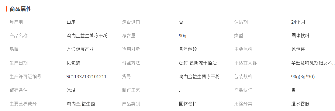 鸡内金益生菌冻干粉 复合益生菌固体饮料 90g(3g*30)/盒厂家批发