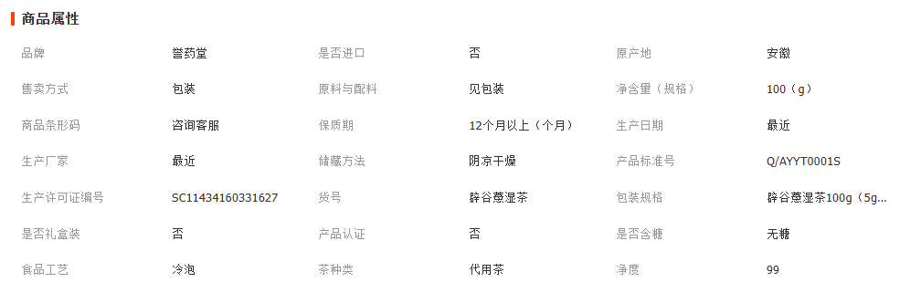 | 主营产品或服务 | 主营: 代用/养生茶 其他冲调饮品 速溶咖啡 | ||