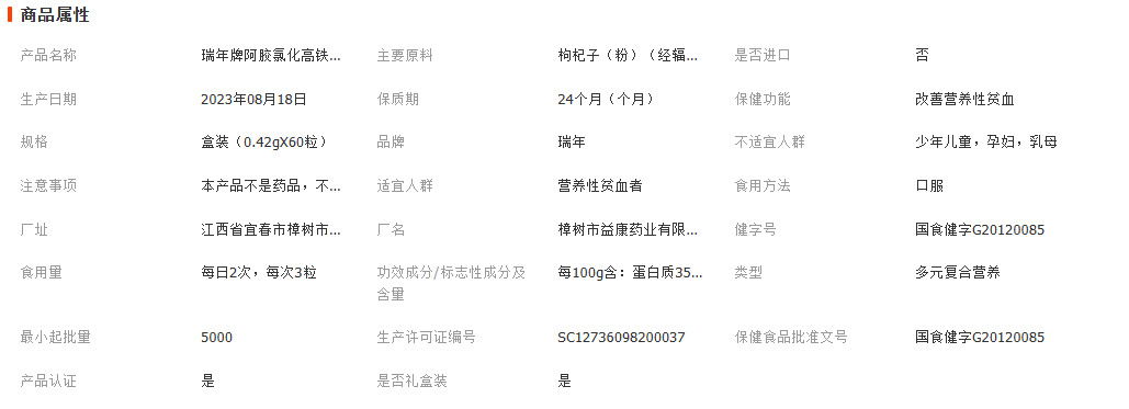 阿胶氯化高铁血红素胶囊瑞年补铁补维C保健品蓝帽女人性保养美肌
