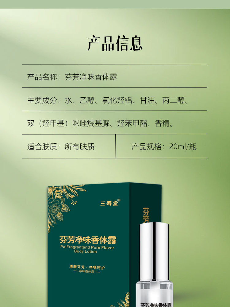 三寿堂芬芳净味香体露去狐臭腋香止汗露腋下