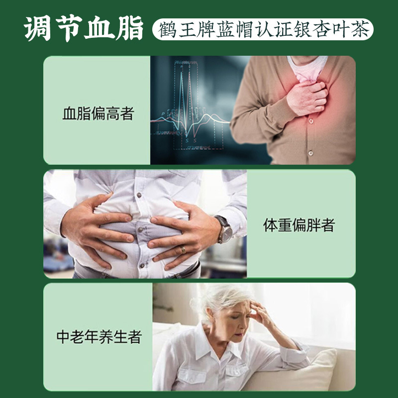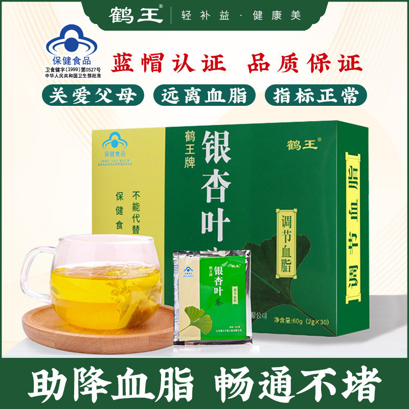 鹤王牌银杏叶茶调节2g/袋*30袋礼送父母中老年辅助 血脂茶降血脂