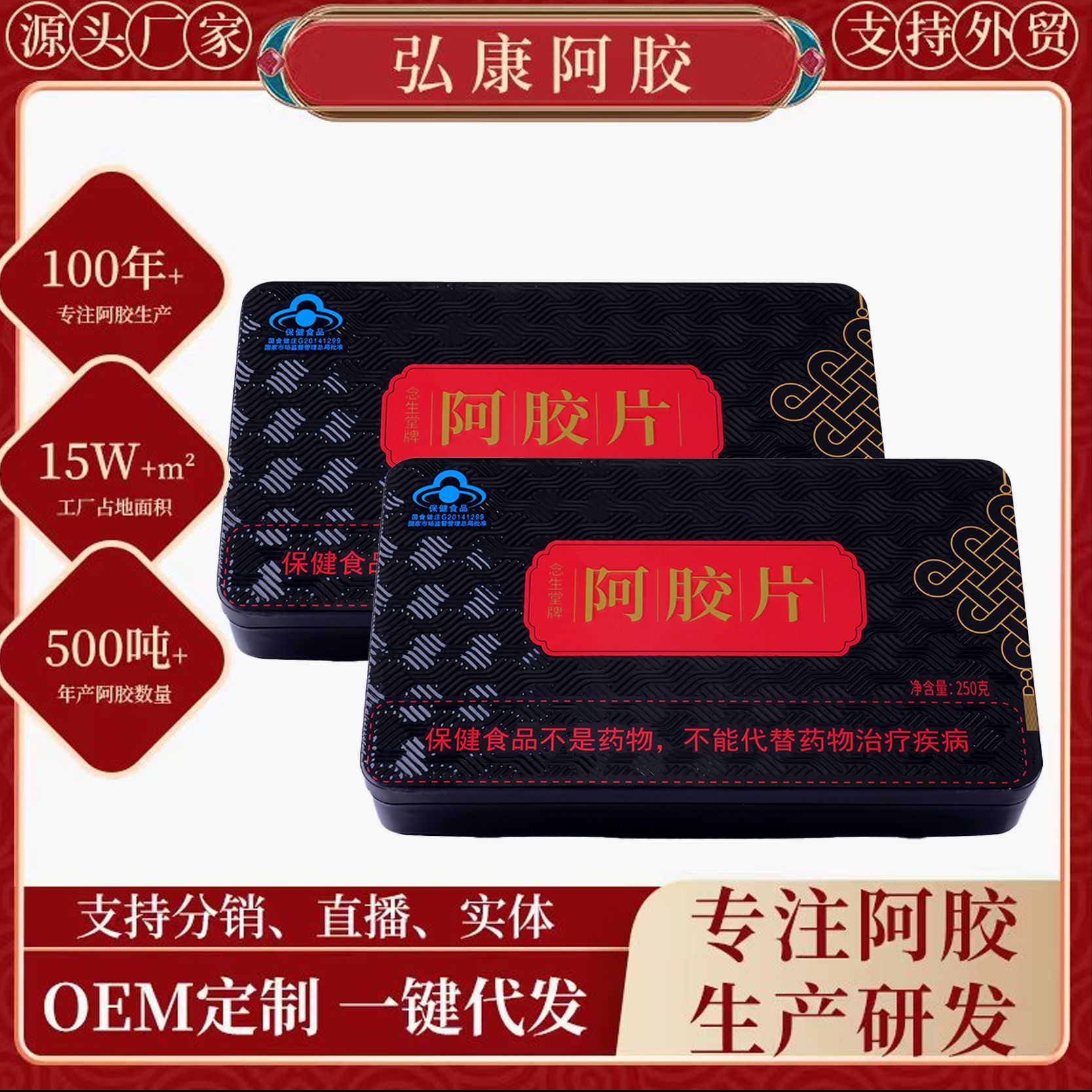 山东阿胶驴皮阿胶块 铁盒装250ejiao驴皮阿胶片阿胶熬阿胶糕原料