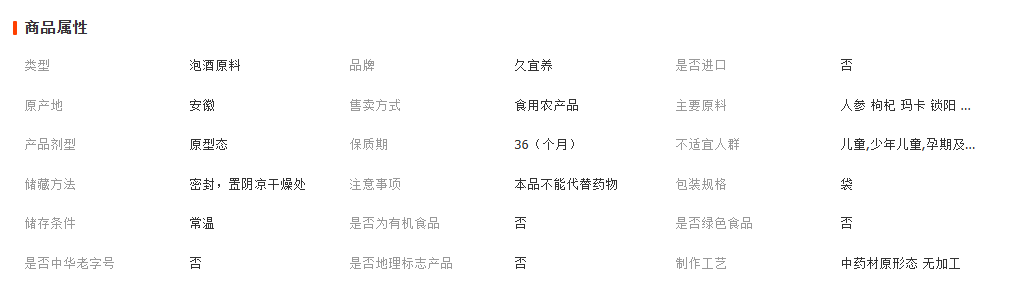 | 主营产品或服务 | 主营: 其他滋补 其他药食同源 参类滋补品 | ||