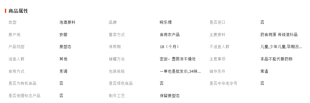 | 主营产品或服务 | 主营: 其他滋补 其他药食同源 参类滋补品 | ||