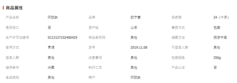 | 主营产品或服务 | 主营: 阿胶 | ||