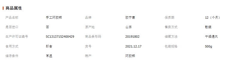 | 主营产品或服务 | 主营: 阿胶 | ||