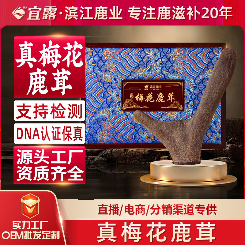 宜露纯梅花根正品鹿茸片带血泡酒中药材送礼盒梅花鹿茸整枝礼盒