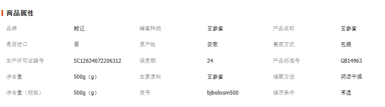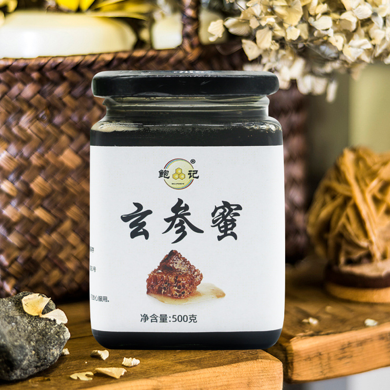 鲍记玻璃瓶玄参蜜黑蜜天然无添加500克药花蜜现货批发代发