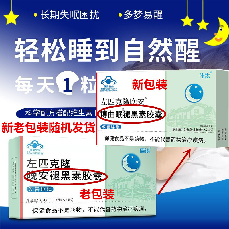 佳洪褪黑素左匹克隆晚安胶囊改善睡眠保健品24粒闪睡蓝帽正品批发