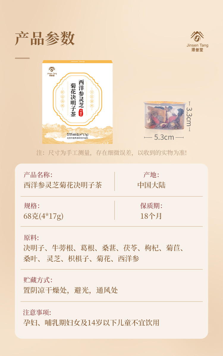 璟参堂西洋参灵芝菊花决明子代用茶养生茶茯苓养神