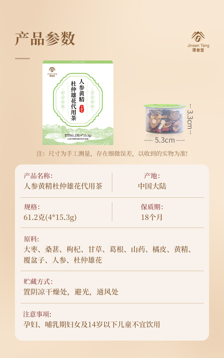 璟参堂人参黄精杜仲雄花代用茶组合茶饮养元