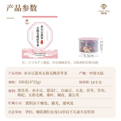 璟参堂赤小豆薏米枸杞五指毛桃茯苓茶茯湿茶4罐/盒薏仁