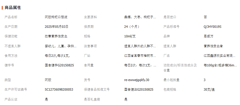 阿胶枸杞口服液10ml/支*30支 女性传统滋补佳品 改善缺铁性性贫血