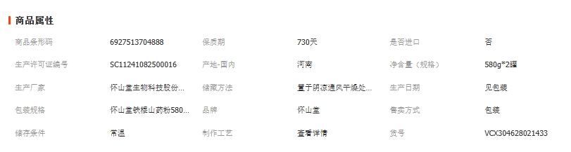怀山堂 铁棍山药粉五年陈臻品580g*2罐礼盒装淮山健脾胃代餐非遗