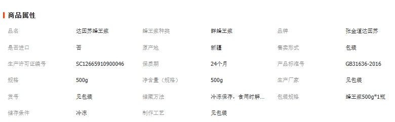 张金道达因苏蜂王浆500g送父母家人健康礼新疆特产冲泡即饮滋养