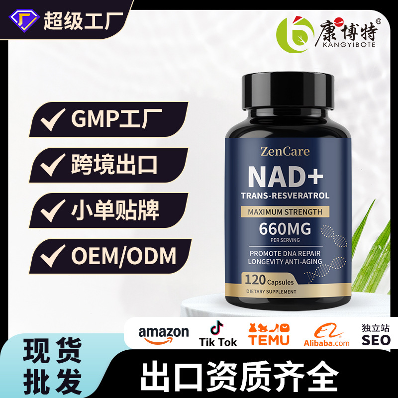 出口亚马逊热卖高含量660mg NAD+反式白藜芦醇硬胶囊片现货oem