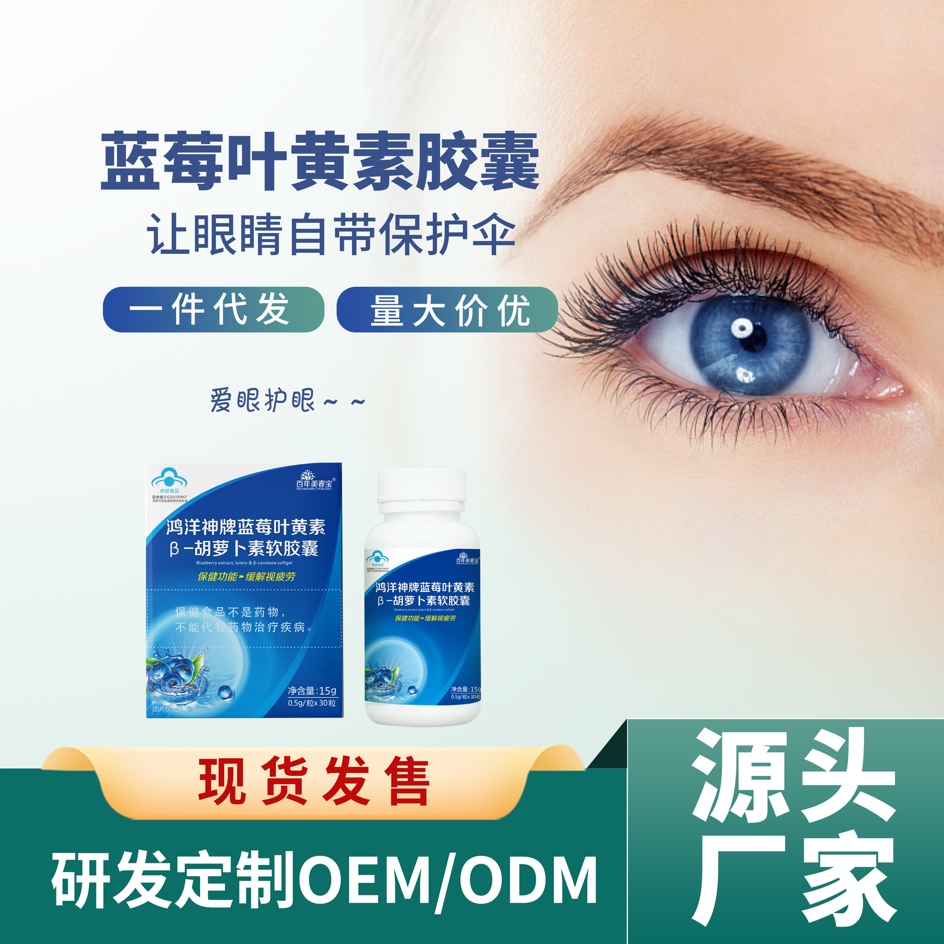 蓝莓叶黄素胶囊成人儿童护眼维生素压片糖果叶黄素厂家