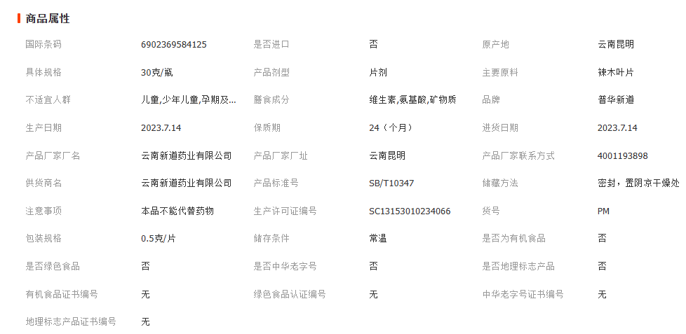 | 主营产品或服务 | 主营: 其他药食同源 维生素 参类滋补品 | ||