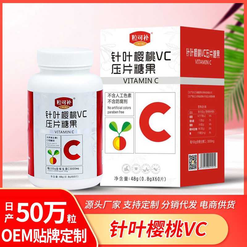 针叶樱桃维生素c片成人vc含片果味复合维c咀嚼片压片糖果厂家