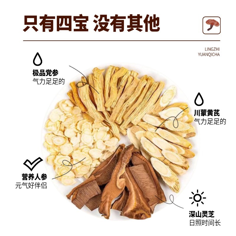 艺品赞灵芝元气茶黄芪党参组合气血养生茶升级款元气四宝茶可代发