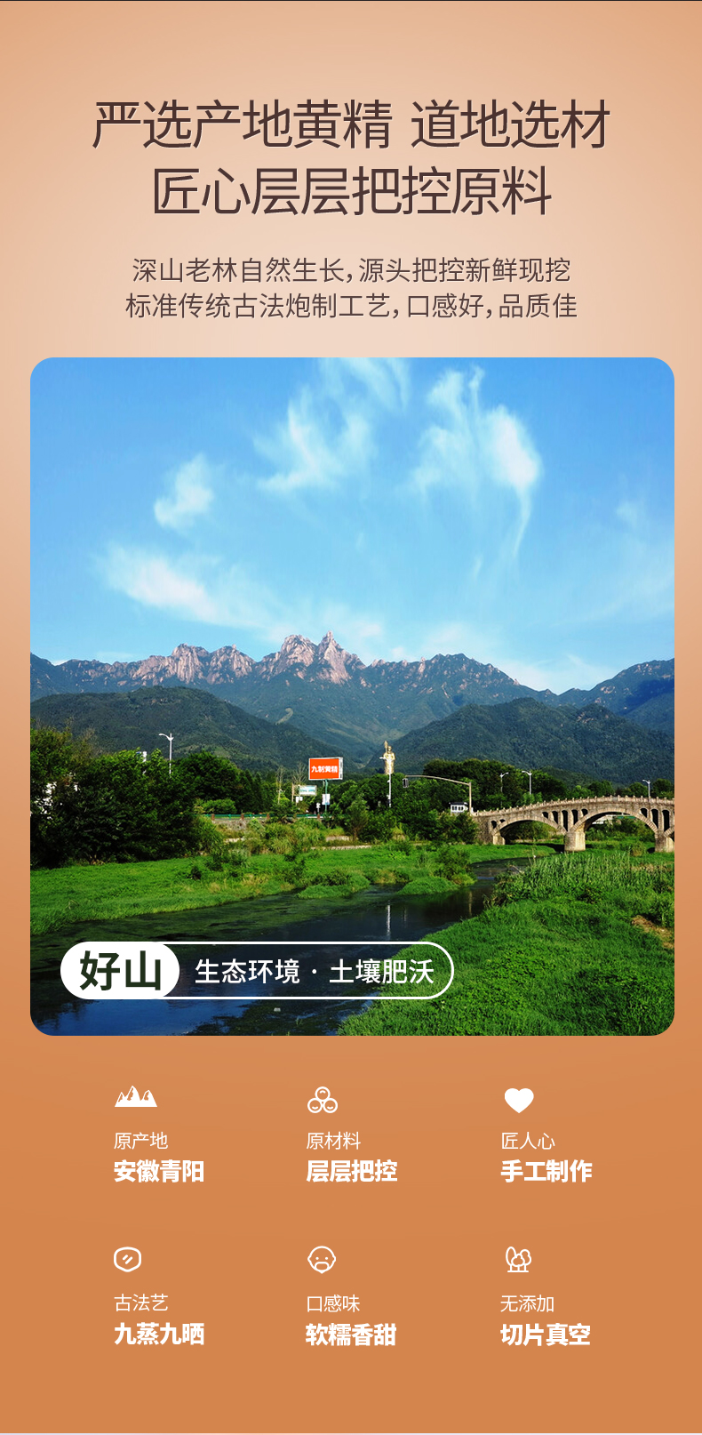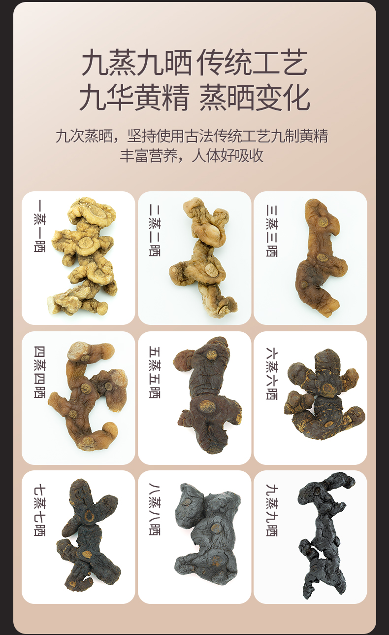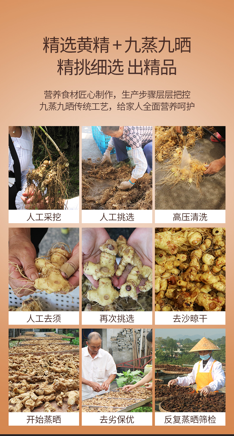 九华山野生黄精500g黄精九蒸九制中药材正品即食泡水九蒸九晒黄精