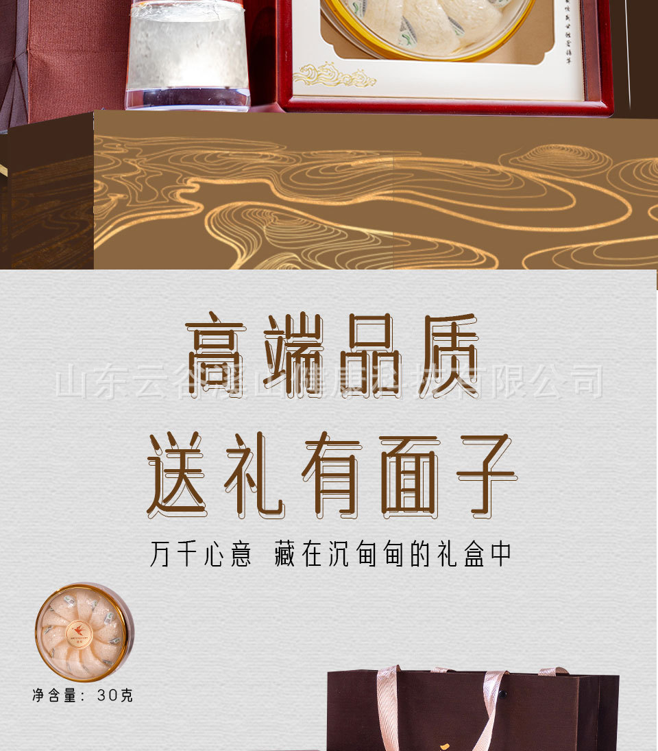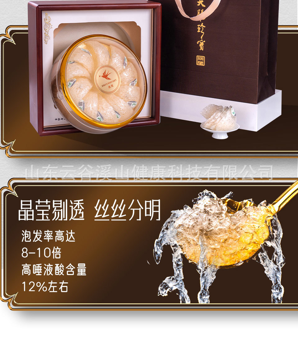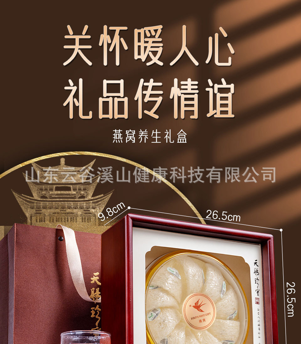 本页信息为山东云谷溪山健康科技有限公司为您提供的“燕窝礼盒干盏燕盏正品官方旗舰店新年送礼佳节送礼孕妇滋补品坐月”产品信息,如您想了解更多关于“燕窝礼盒干盏燕盏正品官方旗舰店新年送礼佳节送礼孕妇滋补品坐月”价格、型号、厂家,请联系厂家,或给厂家留言。