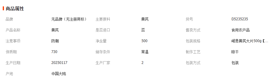 岷县黄芪大片500g正宗无硫纯天然黄芪一等品大片500g袋装免费包邮