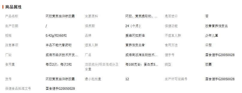 厂家现货代发爱维阿拉斯佳黄芪当归铁胶囊 成人口服胶囊保健食品