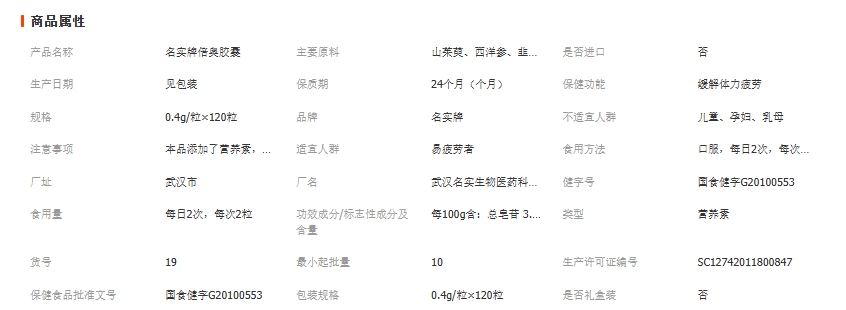 蓝帽名实牌倍奥胶囊缓解体力疲劳山茱萸西洋参复方保健食品