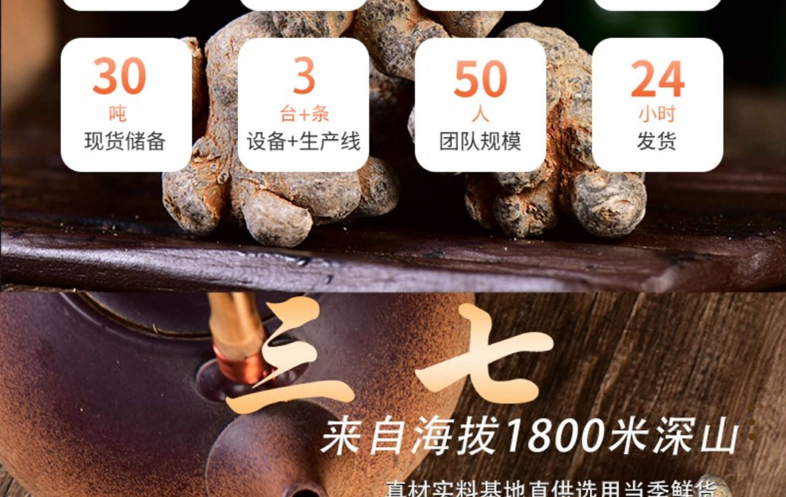 云南文山三七20头40头30头正品37田七春三七粉田七500g包邮