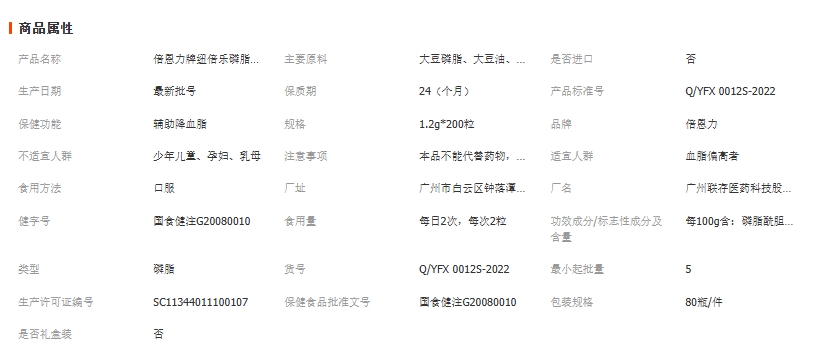 倍恩力牌纽倍乐磷脂软胶囊200粒 保健食品辅助降血脂