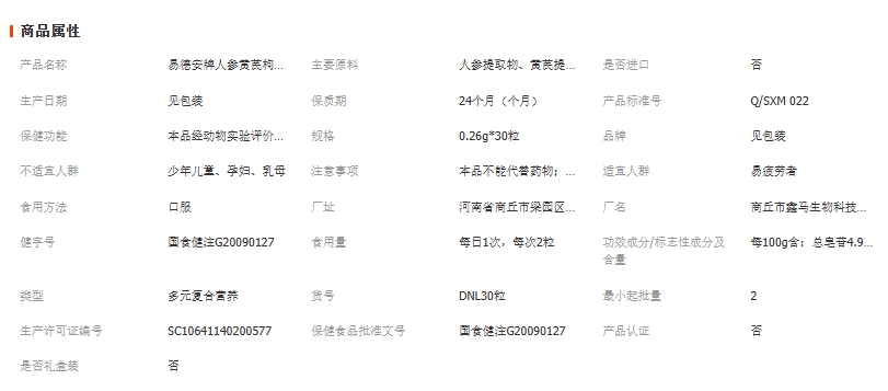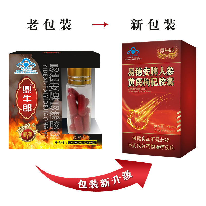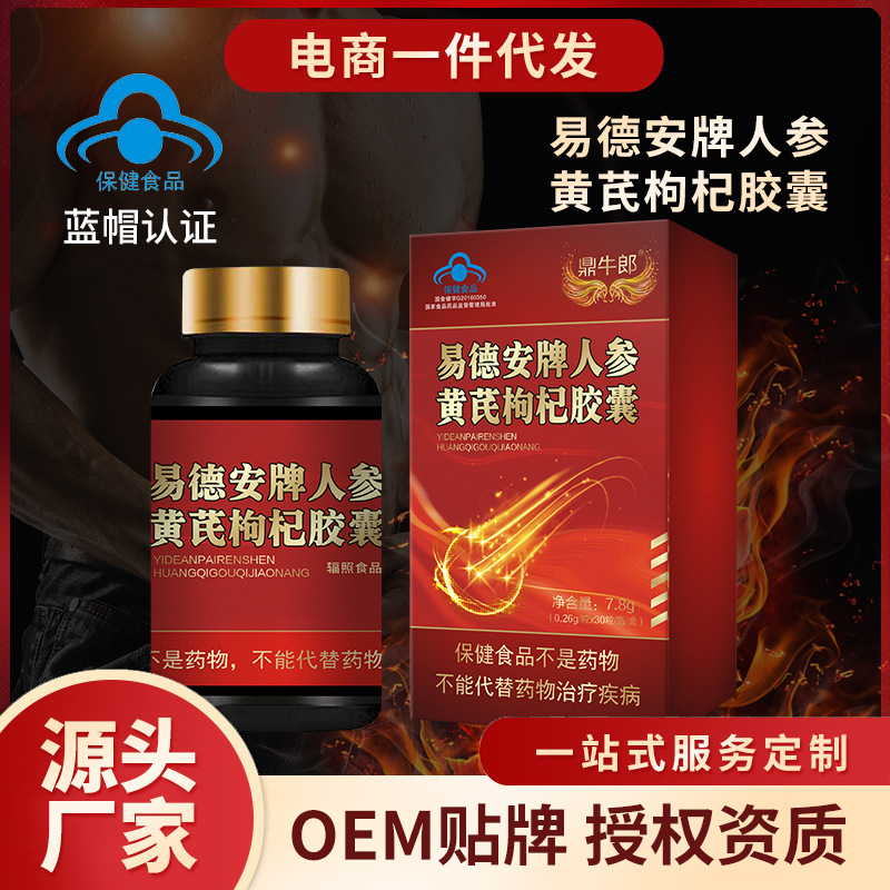 易德安牌人参黄芪枸杞胶囊升级款带广审 保健品男性口服蓝 帽认证